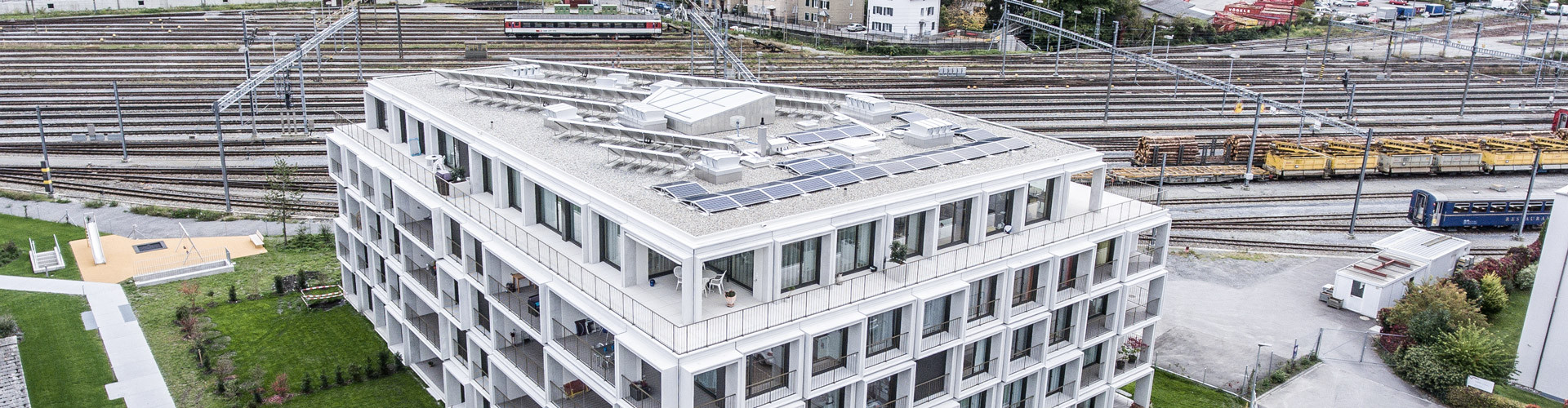 Mehrfamilienhaus an den Gleisanlagen des Bahnhofs Chur.